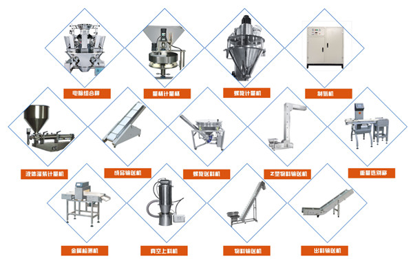 ①塊狀物類:糖果、巧克力、冰糖、餅干、糕點、花生、青豆、開心果、堅果、熟食、醬菜、膨化食品、日用品等; ②顆粒類:味精、雞精、砂糖、瓜子、果仁、膠囊、顆粒狀藥品、種子、飼料、農(nóng)藥、肥料、化學原料等; ③粉劑類:調(diào)味品、味精、鹽、葡萄糖、精細白糖、奶粉、洗衣粉、農(nóng)藥、肥料、化學原料等; ④液體類:黃酒、醬油、米醋果汁、飲料、洗滌劑等; ⑤醬體類:番茄醬、花生醬、果醬、辣椒醬、豆瓣醬等; ⑥其它可裝袋物料。 |